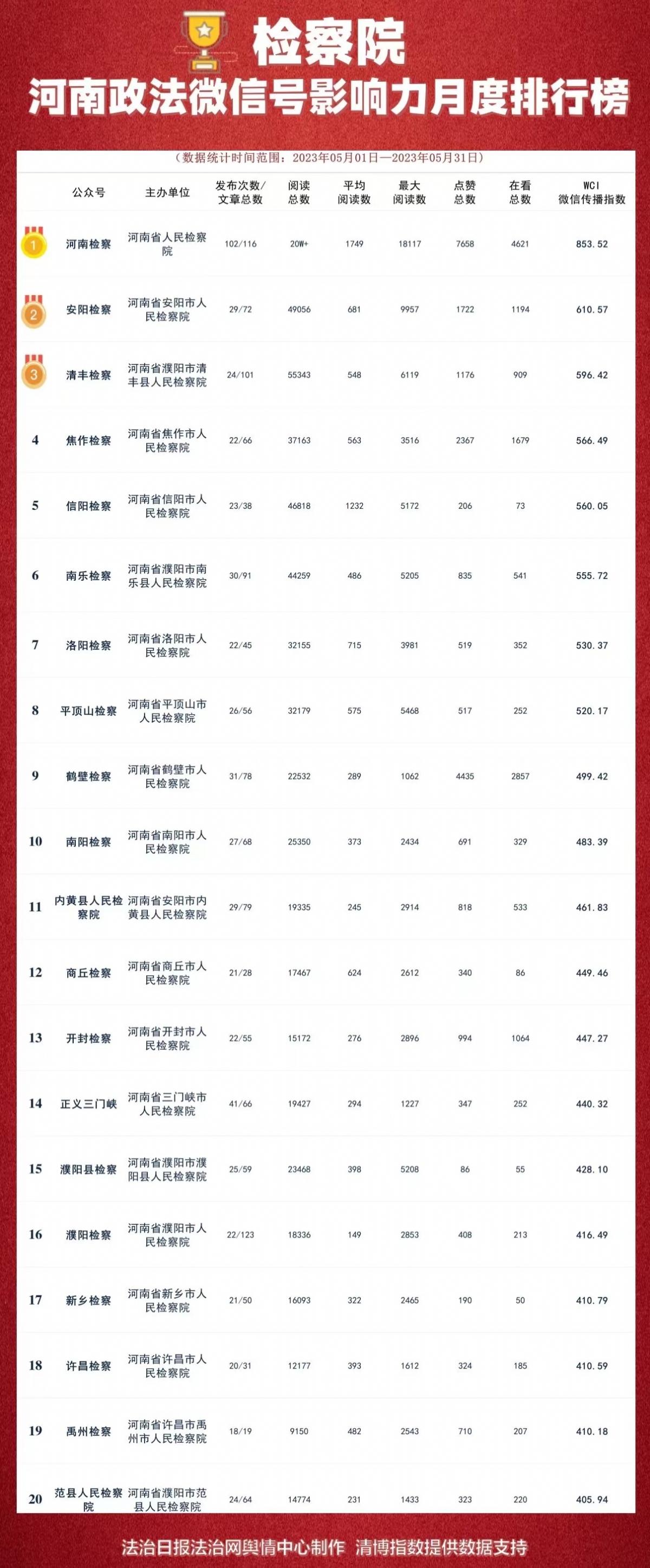 【喜报】“清丰检察”上榜河南政法微信号影响力月榜,荣获季军!