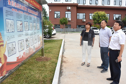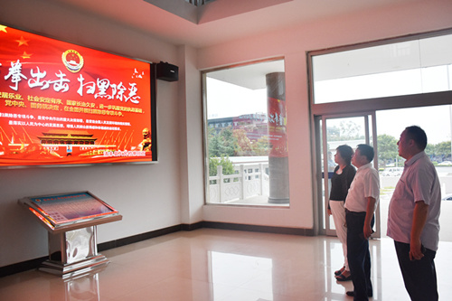 郝自献副书记一行依次观看了我院扫黑除恶专项斗争宣传橱窗、电子屏、宣传标语、扫黑除恶办公室等建设情况。过程中,院党组副书记、常务副检察长鲁淑君介绍了今年以来我院扫黑除恶专项斗争开展情况及档案整理情况。