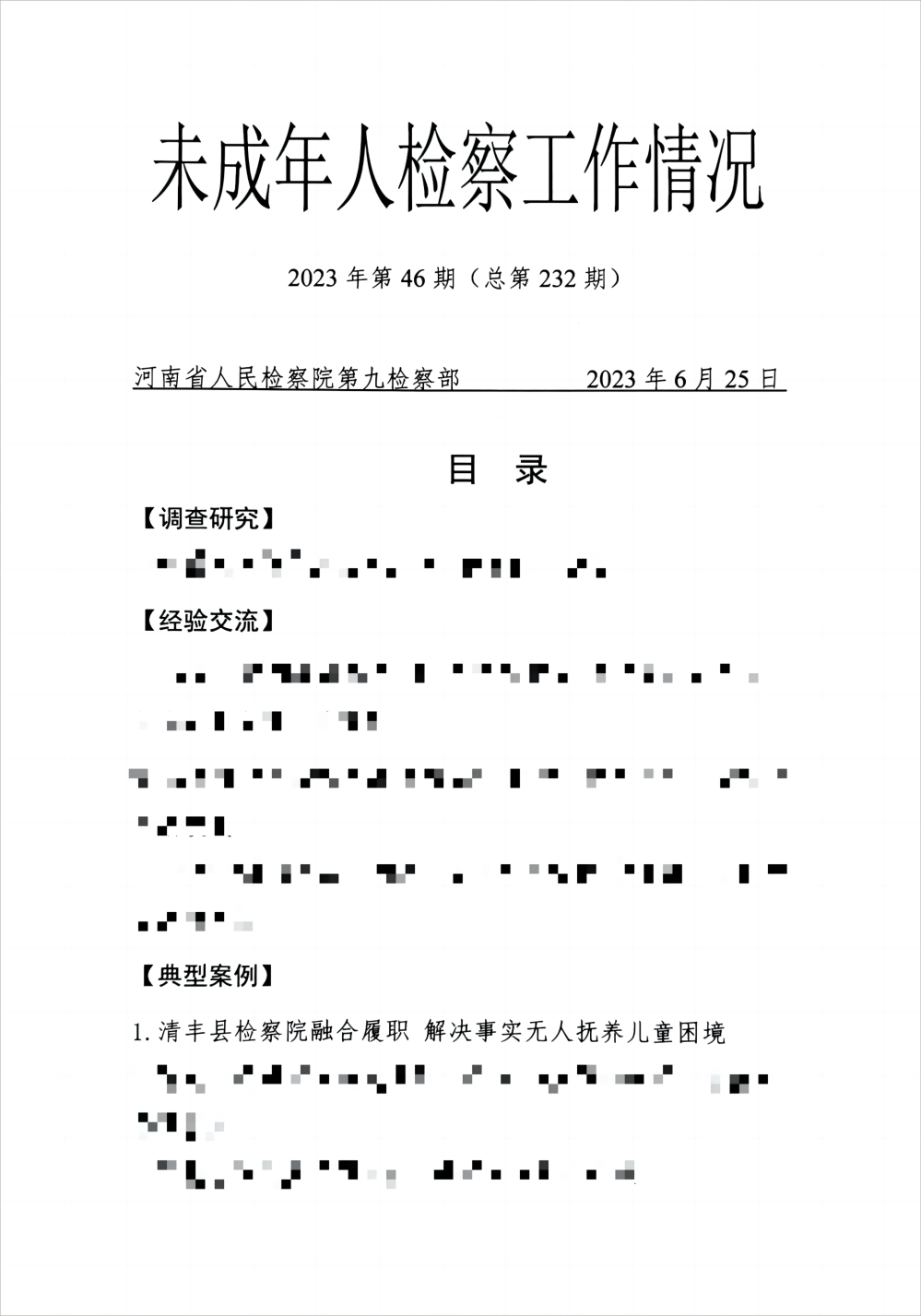 的《清丰县检察院融合履职 解决事实无人抚养儿童困境》被省院第九检