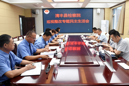 9月13日下午,清丰县检察院召开领导班子巡视整改专题民主生活会。濮阳市检察院检委会专职委员常征、宣传教育处处长刘彦州,县第三督导组组长董国勇、督导组成员王汉岭到会指导。会议由院党组书记、检察长王克臣主持,全体党组成员参加。