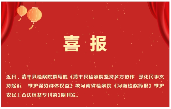 【喜报】《清丰县检察院坚持多方协作 强化民事支持起诉 维护弱势群体权益》被《河南检察简报》专刊刊发