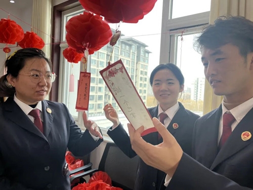 活动现场,平日简单朴素的会议室,在干警的精心布置下,充满了喜乐的元宵气氛:一盏盏红灯笼,连接起百余条灯谜。谜语既涵盖传统的成语谜、字谜、地名谜、水果谜、动物谜,又包含家风家训、党建知识、廉政教育、法律知识,融文化性、趣味性、知识性于一体。干警们踊跃参与,积极竞猜,或驻足思考,或相互探讨破解谜底,猜对的干警均获得精美奖品,现场笑声不断,气氛欢快又热烈。