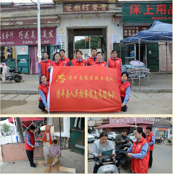 清丰县检察院组织志愿服务者深入双庙乡开展“我们的节日·中秋”系列志愿服务活动,志愿者们向群众发放文明礼仪、文明餐桌、普法宣传等宣传页,为群众详细讲解了文明新风尚、法律知识等,进一步弘扬新风正气,促进社会和谐。