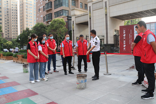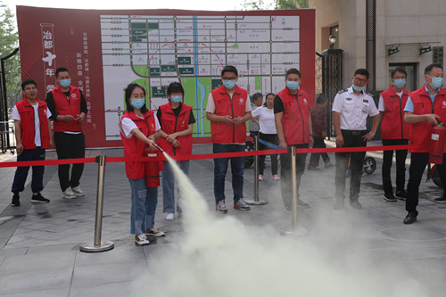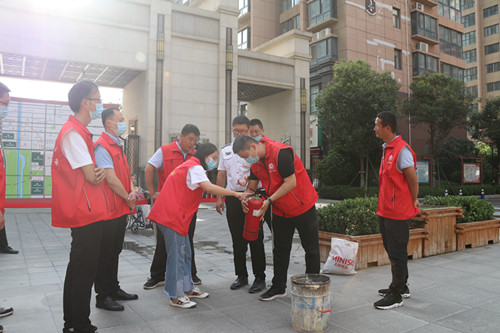 讲座结束后,我院义务消防安全员一行10余人至网格小区冶都·中央公园进行消防应急实战演练,丁勇会主任手把手给义务消防安全员传递火灾应急处置技巧。