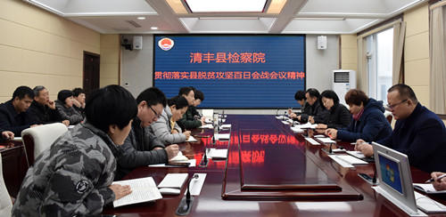 12月21日上午,清丰县人民检察院在三楼会议室召开贯彻落实县脱贫攻坚百日会战精神会议,传达学习县委县政府会议精神及县委书记冯向军对扶贫攻坚的重要指示,安排部署总攻决胜工作阶段帮扶任务。会议由院党组副书记、常务副检察长鲁淑君主持,全院帮扶干警参加。