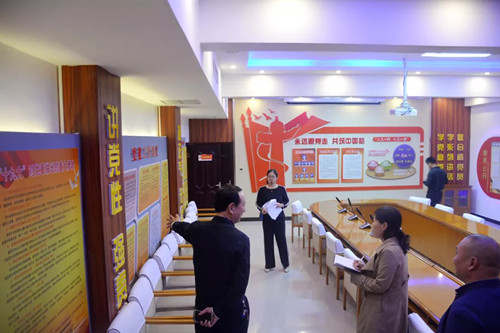 院党组成员、政治处主任、党总支副书记谢艳丽一行人依次参观学习了南乐县人民检察院的党史教育室、党员活动室、党建办公室、英模人物长廊、党建兴检长廊。通过听取介绍、翻阅档案资料、实地参观等形式,详细了解了南乐县检察院机关党建工作开展情况。