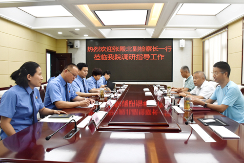 我院党组成员、副检察长南志军首先向张殿北副检察长一行汇报本院控申工作。控申科科长韩利花汇报了当前本院控申工作面临的问题和下步工作打算。张殿北副检察长一行就我院控申工作中案源匮乏、赔偿案件等问题一一作出指导。
