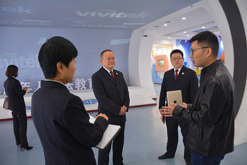 在郑州市管城区检察院未检科干警的引领下,我院一行人来到该院未成年人普法教育中心,先后参观了“法治护航、健康成长”“青春迷雾、风雨歧途”“心灵灯塔、平安呵护”“法治少年、梦想远航”四个主题教育展区以及模拟法庭和“心灯”工作室两个办公区域,详细听取了该院“未成年人帮教在线平台”的介绍,进一步了解了该平台的运行流程和应用情况。