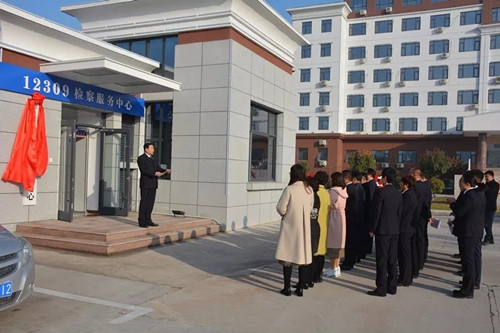 为认真贯彻落实党的十九大精神、拓展司法为民渠道,丰富检务公开形式,提升检察服务水平和检察机关公信力,11月9日上午,清丰县人民检察院举行“12309检察服务中心”揭牌仪式,清丰县人大常委会副主任周秀安一行8人应邀到场。院党组成员、检委会专职委员、控申科干警等参加仪式。