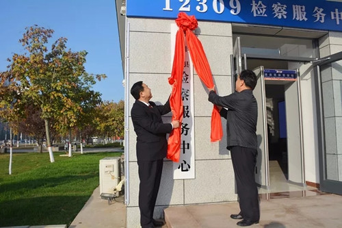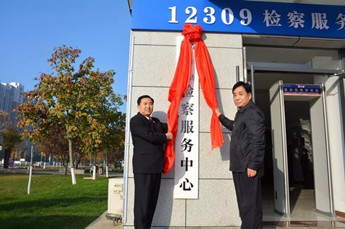 活动中,清丰县人大常委会副主任周秀安和院党组书记、检察长王克臣共同为我院“12309检察服务中心”揭牌。
