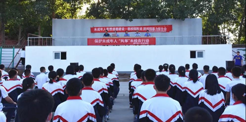 九月,秋风送爽,课间时间,刚刚开学的仙庄初级中学的学生正在走廊里讨论一场法治讲座。
