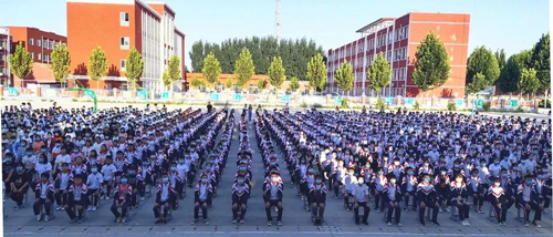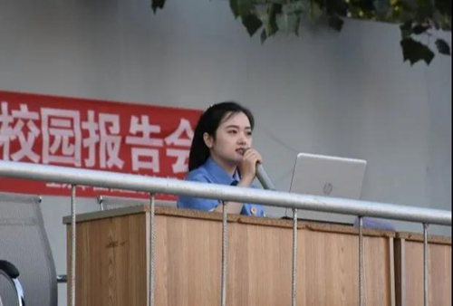 进入大操场,全校师生整整齐齐地排列坐在主席台下方,安静等待这场特殊的“开学第一课”开讲。