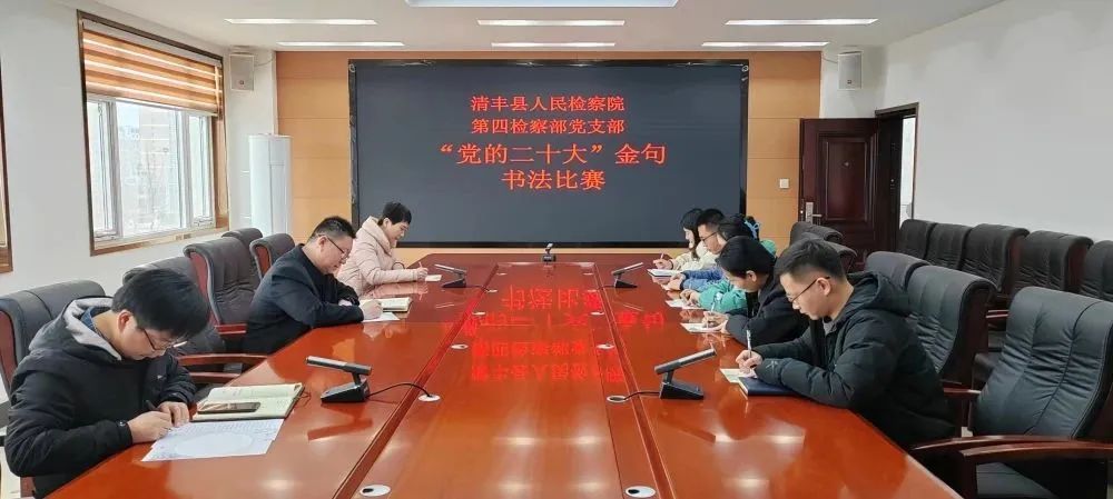 同时,开展“党的二十大精神”金句书法比赛,每位党员用正规书法稿纸书写“党的二十大精神”金句内容,切实加强对“党的二十大精神”的深刻认识。要求党员干警牢记自己的使命和责任,工作中加强党的全面领导,坚持以人民为中心的发展思想。