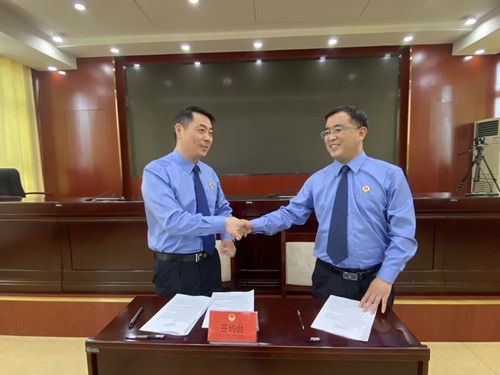 清丰县院杨斌检察长与南乐县院江艳伟检察长共同签订“基层检察院结对帮扶协议”,标志着两院正式成为结对共建院。